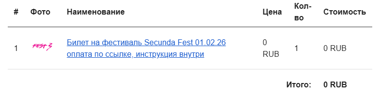 После регистрации вам придет письмо с заказом стоимостью 0 руб., что подтверждает факт регистрации на фестиваль.